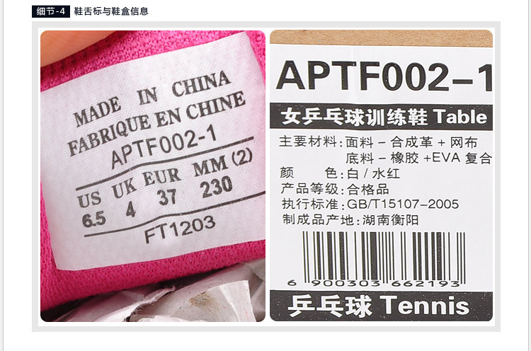 李寧 女式 橡膠防滑大底乒乓球訓(xùn)練鞋APTF002-1