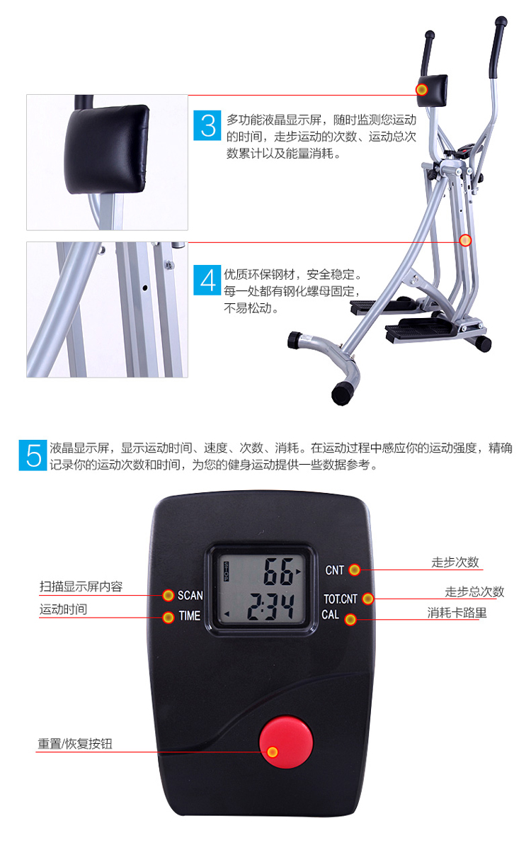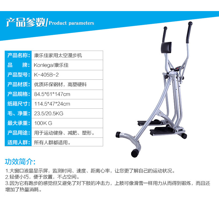 康樂佳太空漫步機(jī)K405B 仿生跑步 滑雪 健身車 走路機(jī) 四合一家用健身