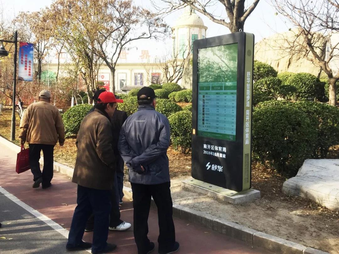 據(jù)進(jìn)一步了解,2018年,天津南開區(qū)健康主題公園內(nèi)設(shè)立了舒華智能健身步道,全長為1公里,主要由人流量探測系統(tǒng)、步道定位工作站、健康互動大屏、健康心率柱、室外環(huán)境監(jiān)測器以及來一場“智能步道”系統(tǒng)等組成。途中每隔一段距離都會配有一個舒華健康心率柱,人們在運(yùn)動間歇握住柱子上的心率觸摸鍵時,即可檢查自己的運(yùn)動強(qiáng)度與狀態(tài),了解自身健康情況,十分方便、人性化。