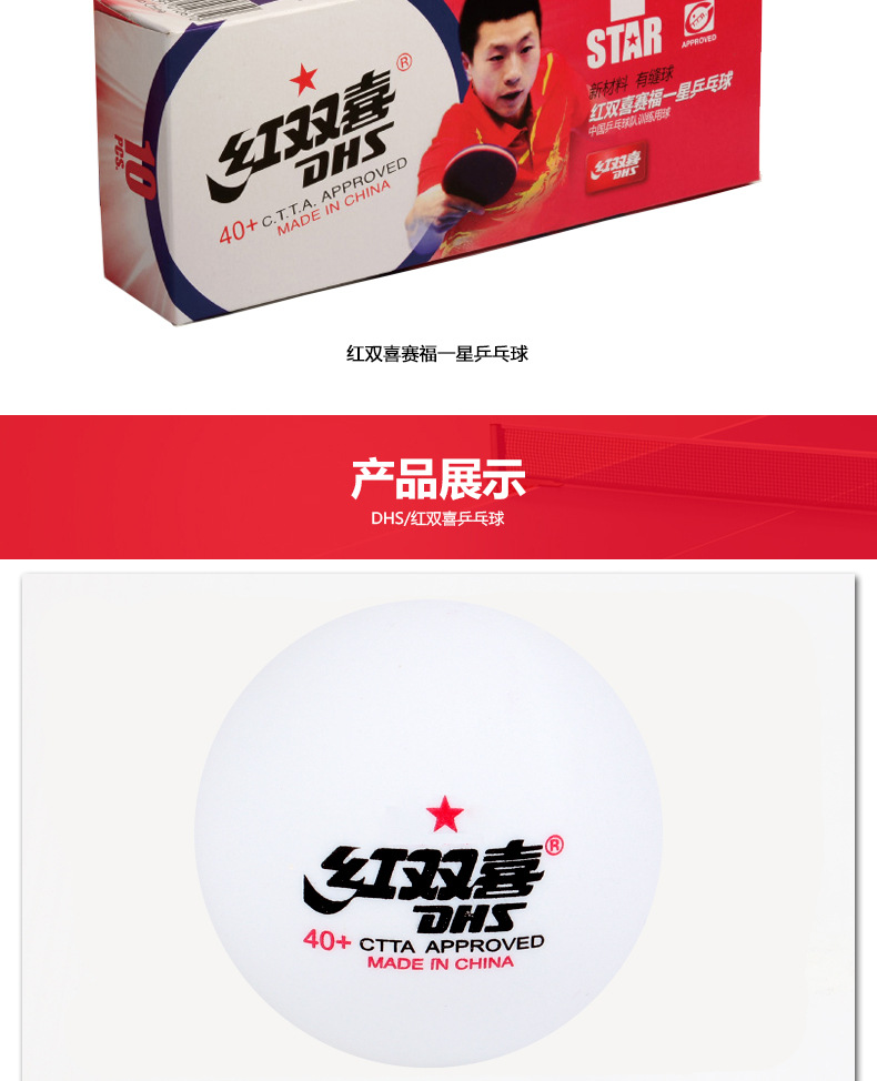 紅雙喜DHS 40mm白色二星乒乓球專業(yè)比賽