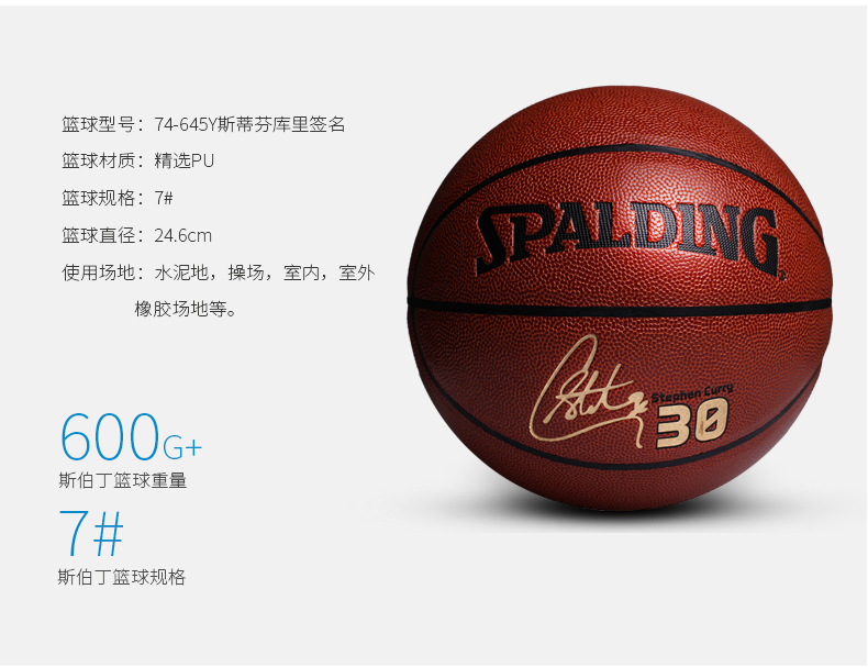 斯伯丁藍(lán)球74-645y正品室外耐磨NBA七號庫里軟皮PU籃球