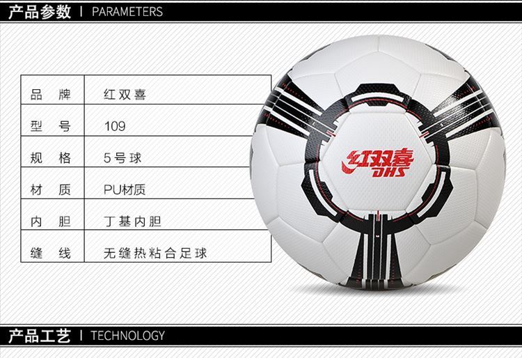 紅雙喜足球FS109 無縫熱粘合PU高彈比賽訓練使用足球