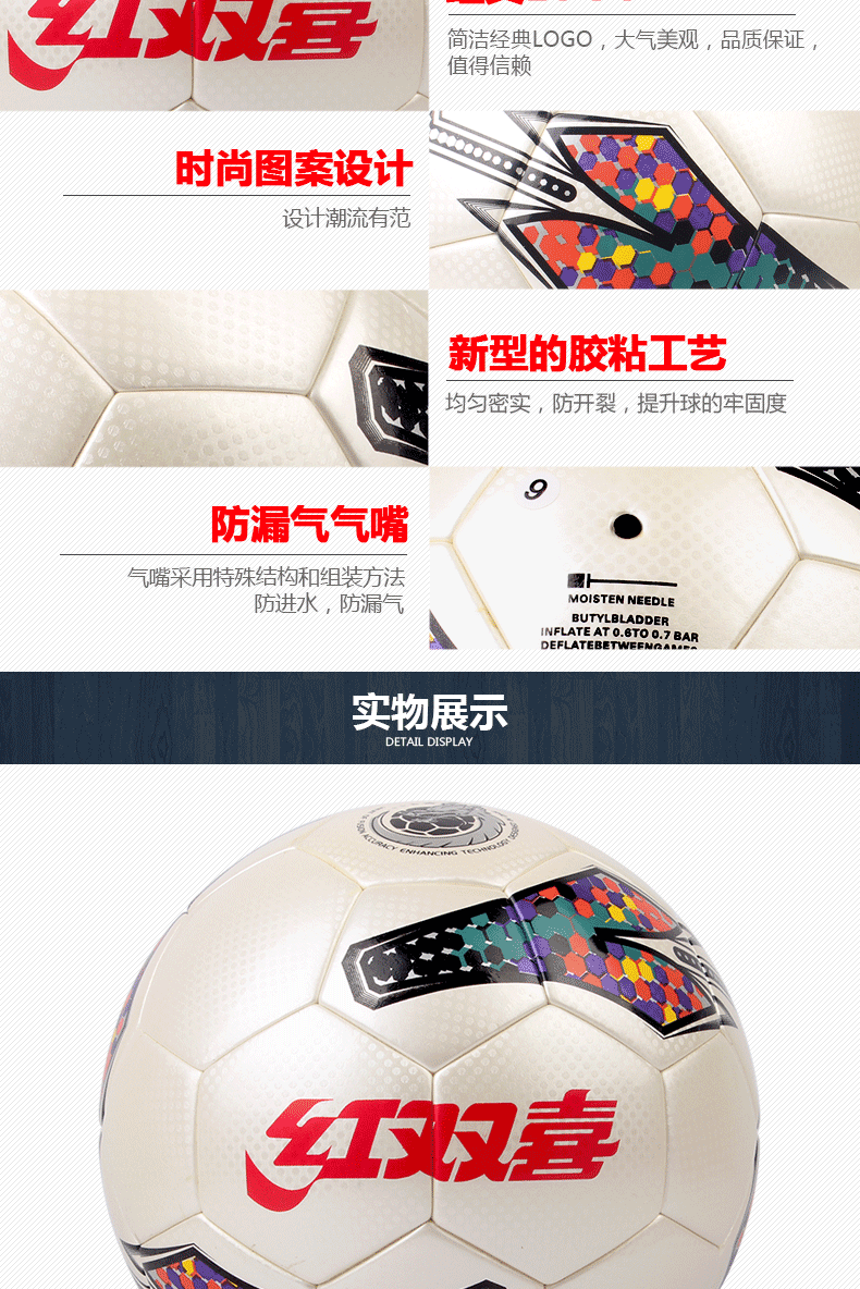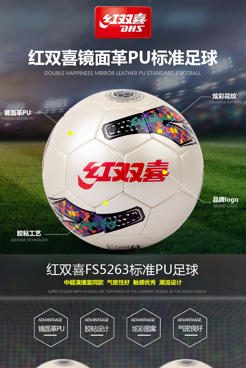 紅雙喜足球FS5263-1 鏡面革PU膠粘足球比賽用球