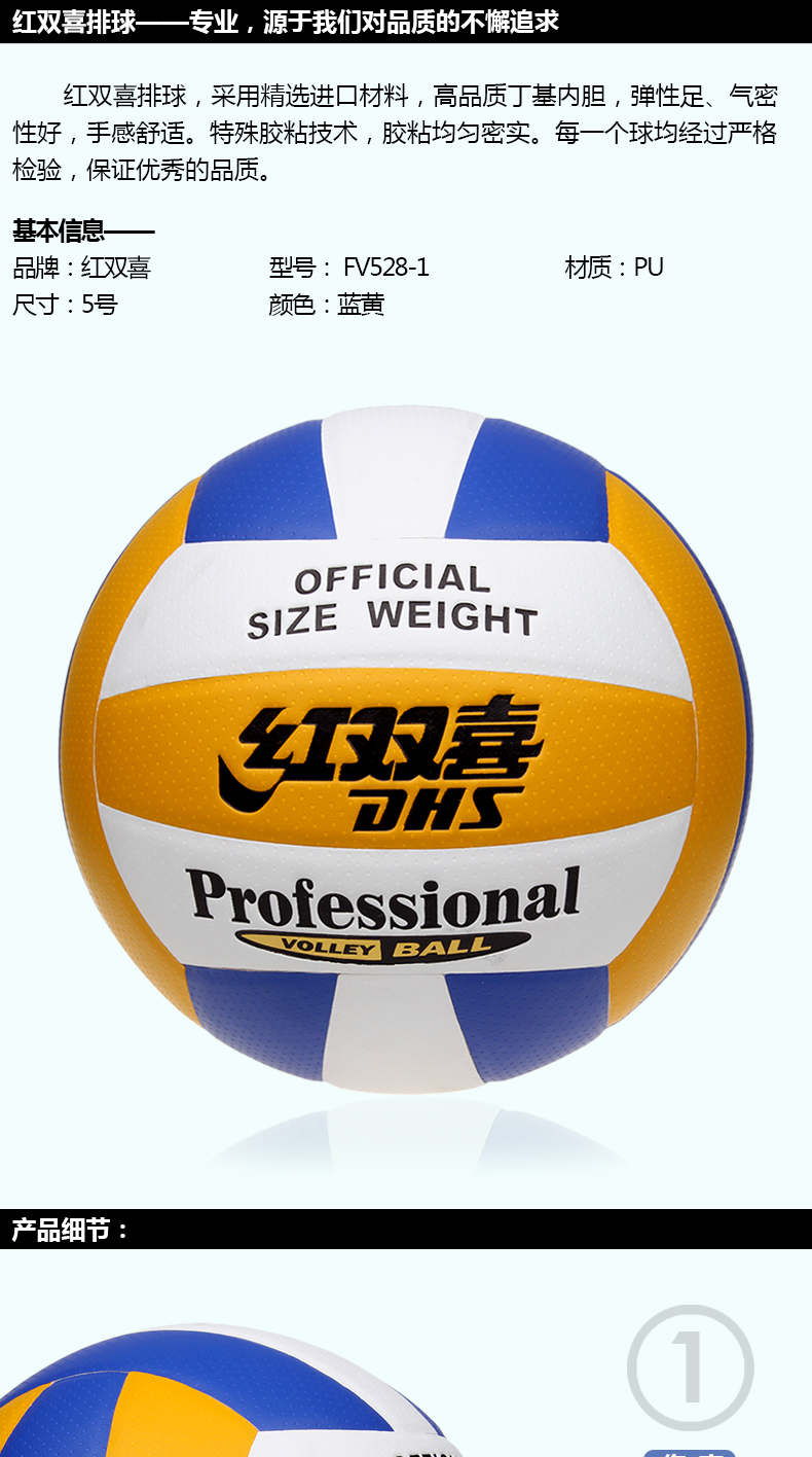 紅雙喜排球FV528-1PU革膠粘排球室內(nèi)外訓(xùn)練比賽用球