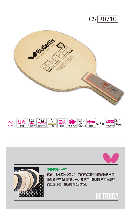 Butterfly蝴蝶20710 普碳底板直拍普里莫拉茨碳(Butterfly Primorac Carbon CS)
