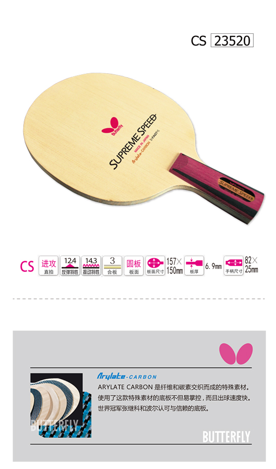 Butterfly蝴蝶23520 SUPREME SPEED 極速乒乓底板(蝴蝶中國(guó)10周年紀(jì)念款)