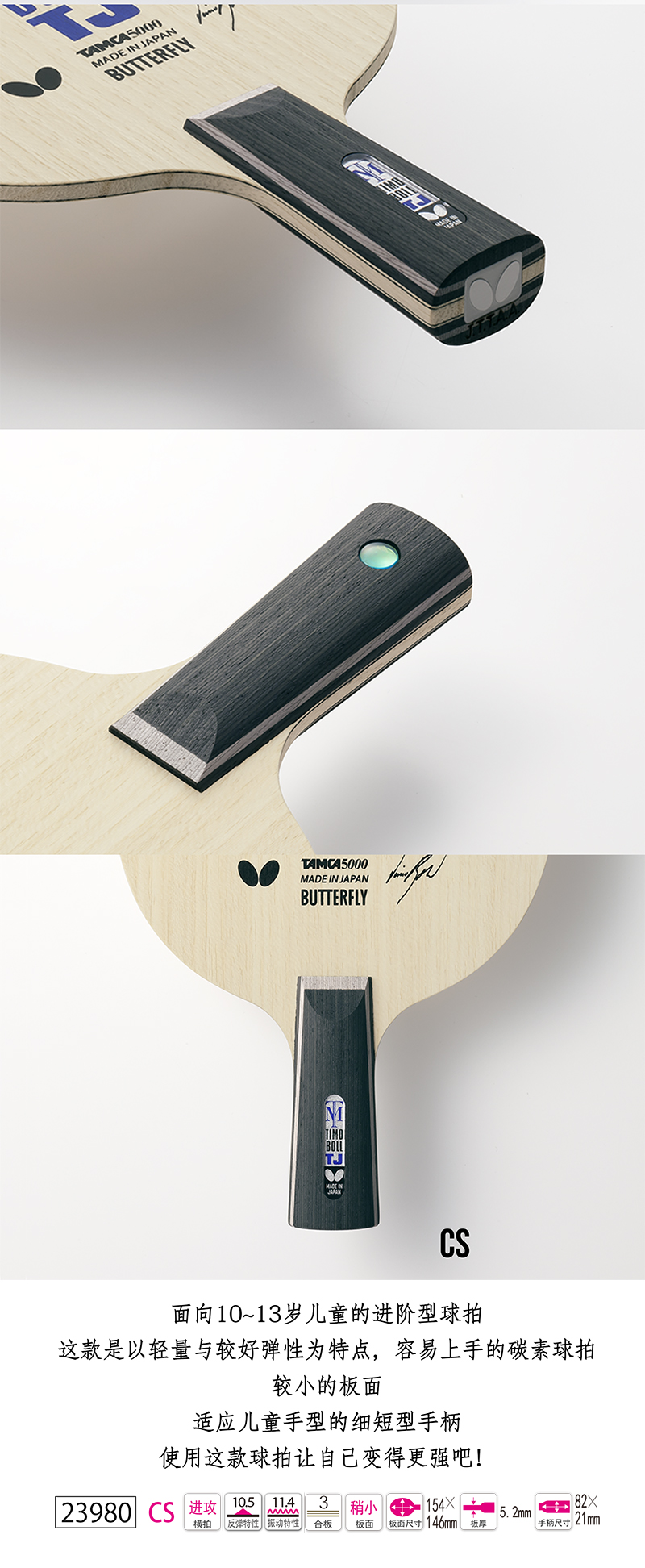 Butterfly蝴蝶23980 TIMO BOLL TJ-CS乒乓球碳素底板 兒童輕量進(jìn)階球拍