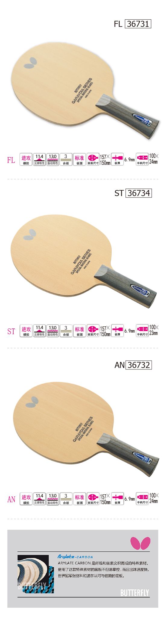 Butterfly蝴蝶36731 GARAYDIA-ALC36731 乒乓底板 進攻型 纖維碳素 橫拍