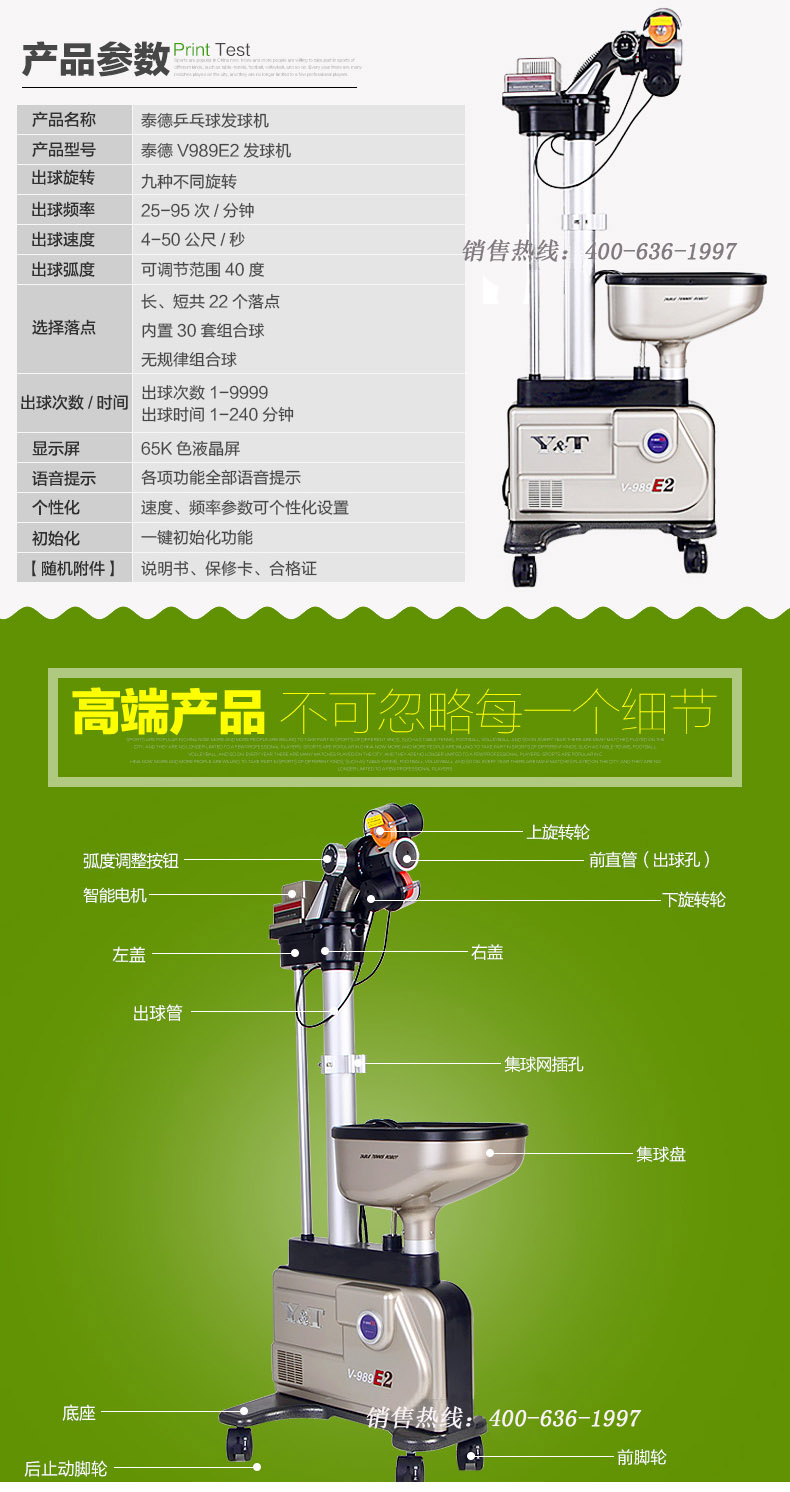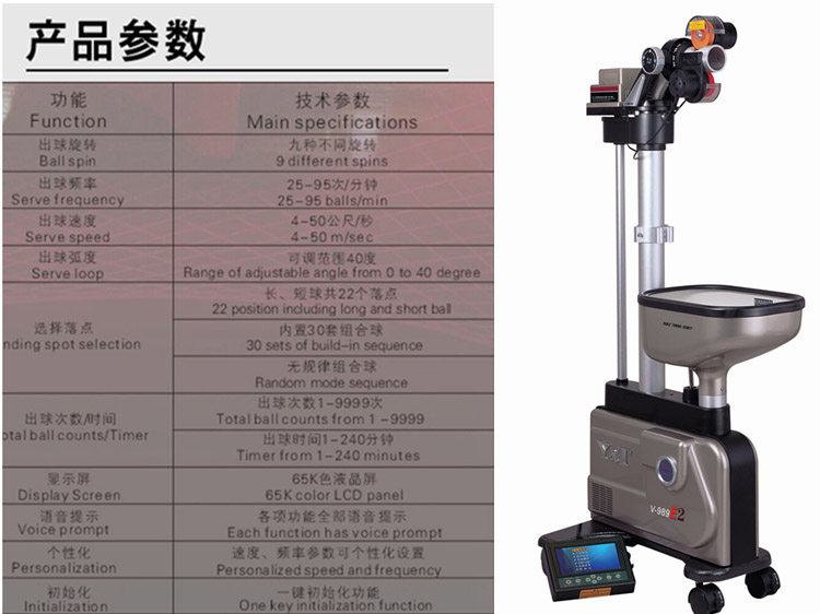 泰德V-988乒乓落地式訓練專用智能乒乓發(fā)球機