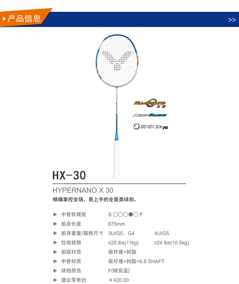 VICTOR威克多羽毛球拍單拍全碳素業(yè)余初中級耐打穩(wěn)定全面類HX-30