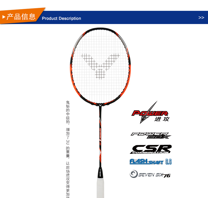 VICTOR威克多羽毛球拍單拍碳纖維業(yè)余初中級進(jìn)攻類高磅 TK-220H