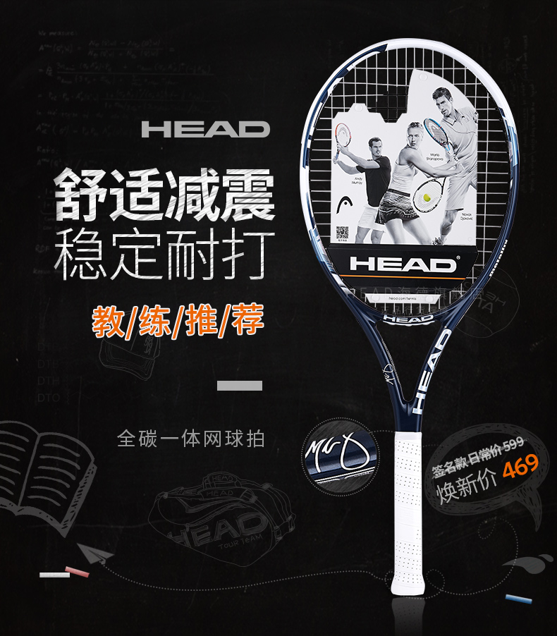 HEAD海德碳纖維全碳素初學(xué)女士定制單人網(wǎng)球拍套裝