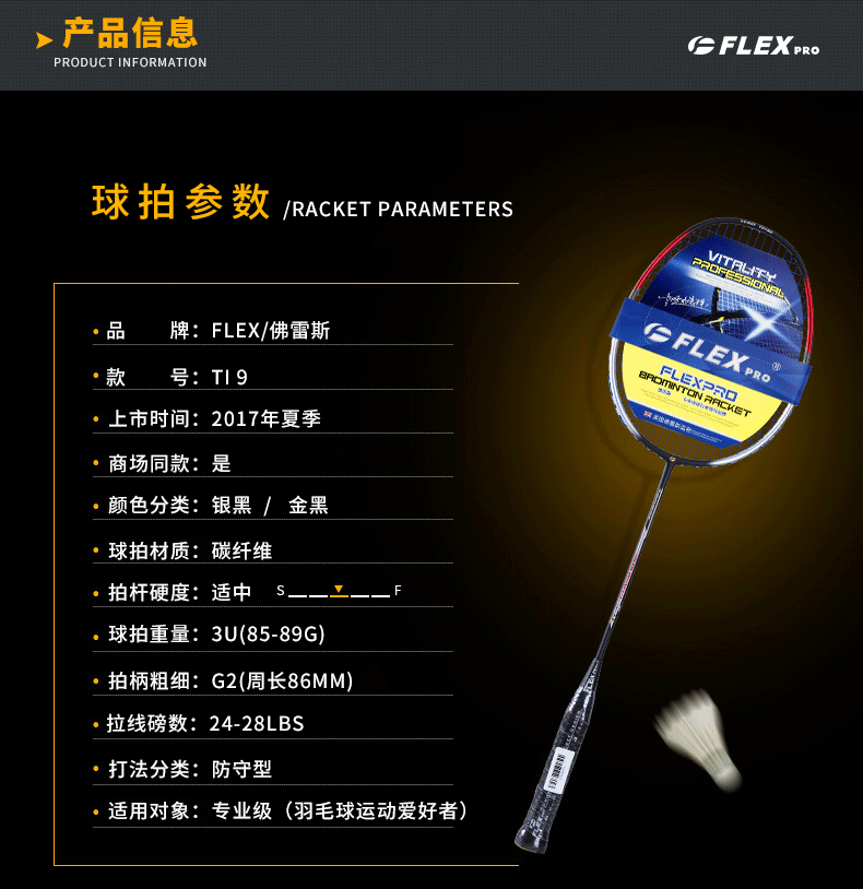 佛雷斯FLEX羽毛球拍TI-9鈦網(wǎng)全碳素超輕3U攻防拍