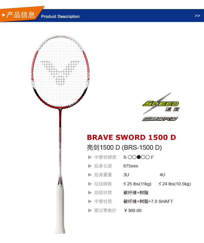 VICTOR威克多羽毛球拍單拍碳纖維業(yè)余初級速度類亮劍系BRS-1500D