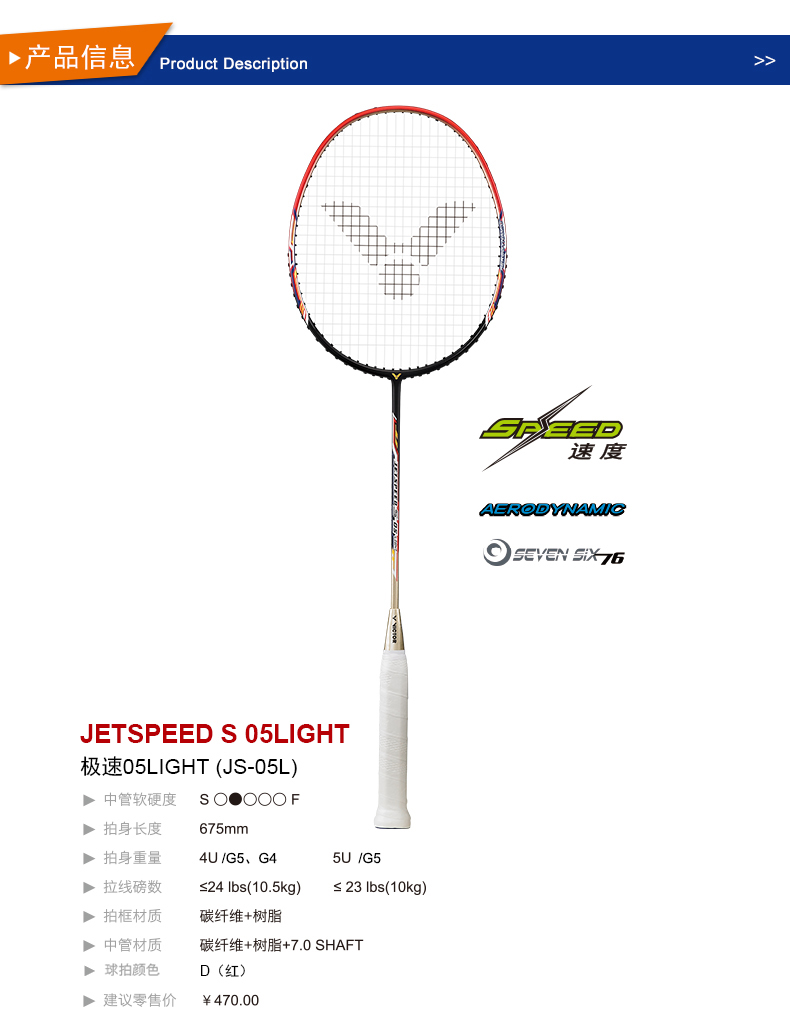 VICTOR威克多羽毛球拍單拍碳纖維業(yè)余初中級(jí)輕量速度類 JS-05L