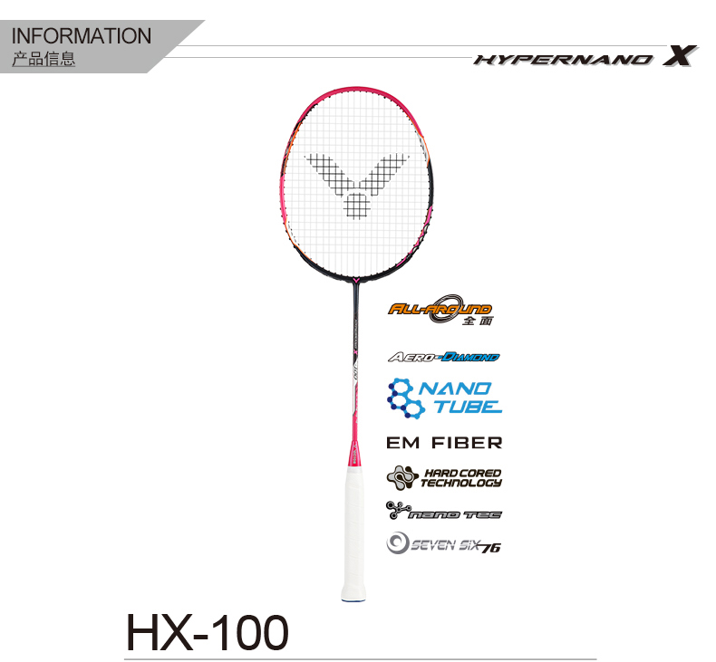 VICTOR威克多羽毛球拍單拍碳纖維業(yè)余中高級(jí)精準(zhǔn)全面類HX-100
