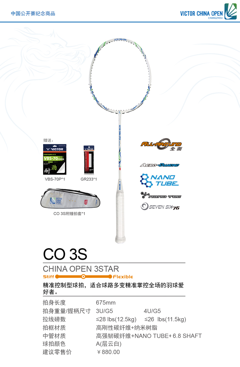 VICTOR威克多羽毛球拍單拍碳纖維業(yè)余中高級穩(wěn)定耐打精準CO3S