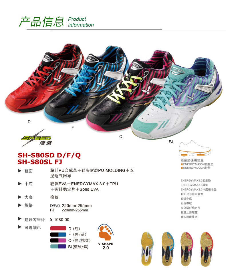 VICTOR威克多羽毛球鞋男女款運(yùn)動鞋輕彈透氣耐磨速度類S80SD