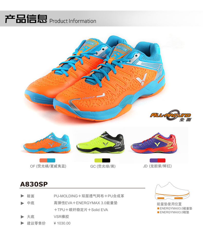 威克多勝利羽毛球鞋全面類男女款防滑耐磨羽鞋 A830SP -JD