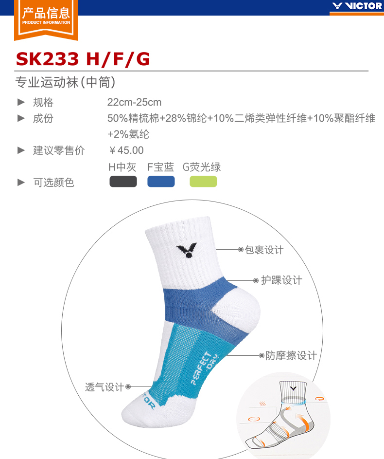 勝利VICTOR羽毛球襪子SK233 中筒加厚毛巾底女襪專業(yè)運動襪 透氣