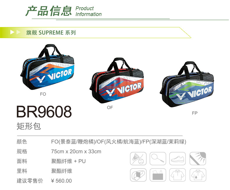 VICTOR威克多 羽毛球拍包網(wǎng)羽兩用矩形包大容量旗艦款 BR9608