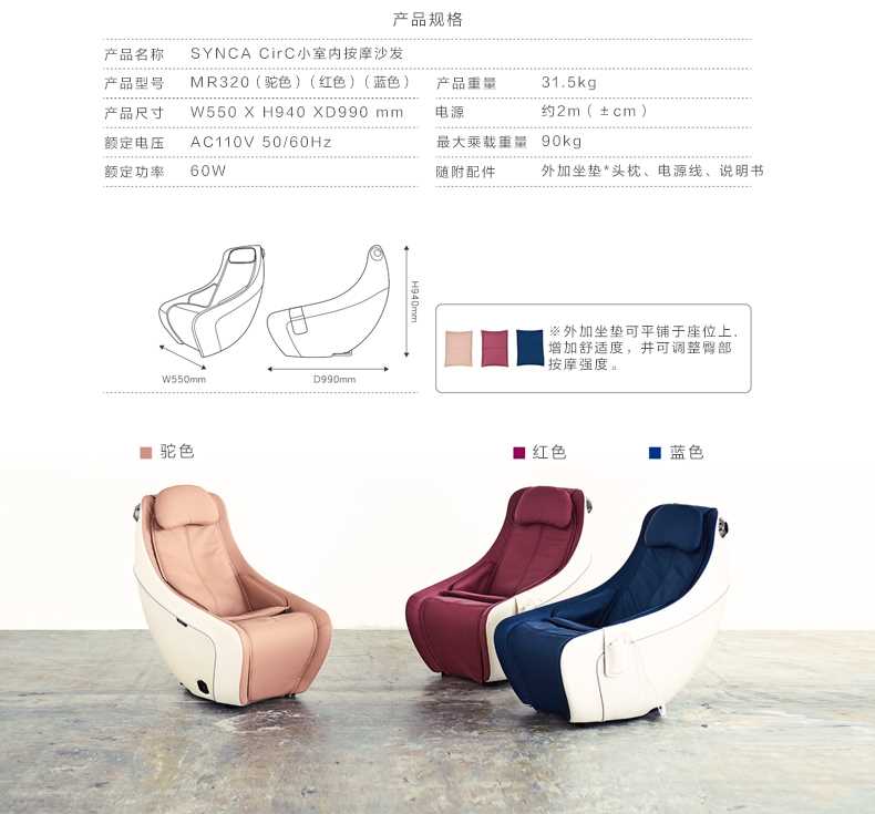 喬山新品按摩椅多功能家用按摩沙發(fā)椅SYNCA系列MR320