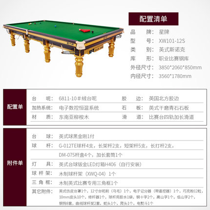 星牌 臺(tái)球桌 XW102-12S英式標(biāo)準(zhǔn)斯諾克球臺(tái)