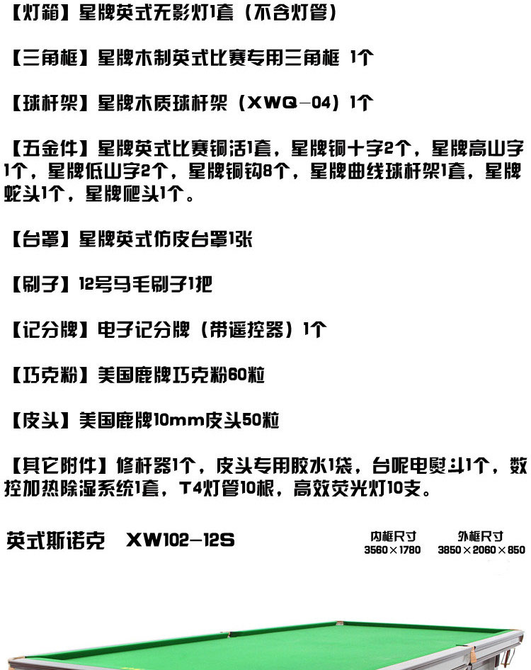 星牌 臺球桌 XW102-12S英式標準斯諾克球臺