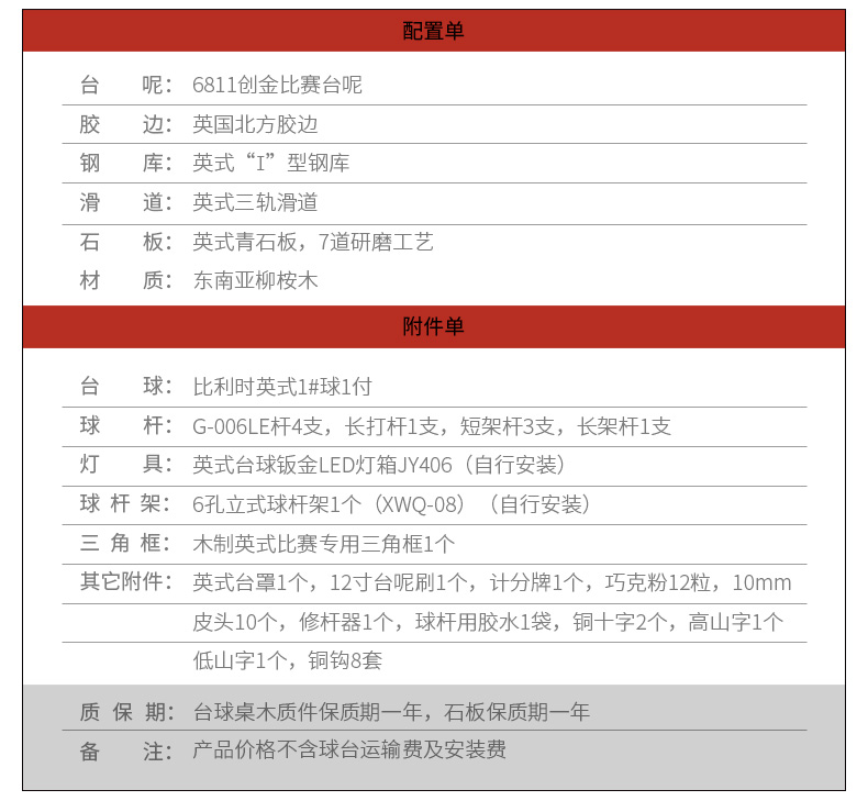 星牌 臺(tái)球桌 XW105-12英式標(biāo)準(zhǔn)斯諾克球臺(tái)(臉譜版)