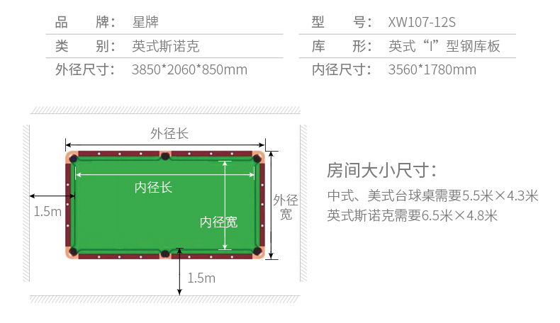 星牌 臺(tái)球桌 XW107-12S英式標(biāo)準(zhǔn)斯諾克球臺(tái)