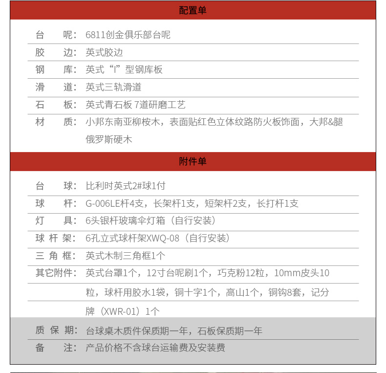 星牌 臺(tái)球桌 XW106-12S英式標(biāo)準(zhǔn)斯諾克俱樂(lè)部用臺(tái)
