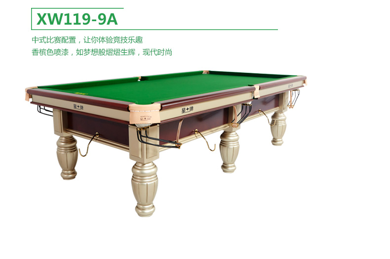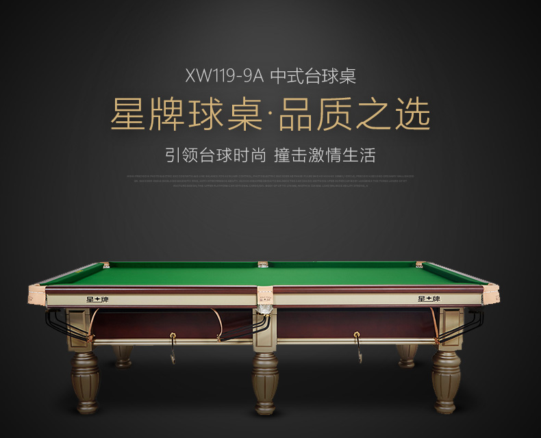 星牌 臺(tái)球桌 XW119-9A中式黑八俱樂部比賽球臺(tái)