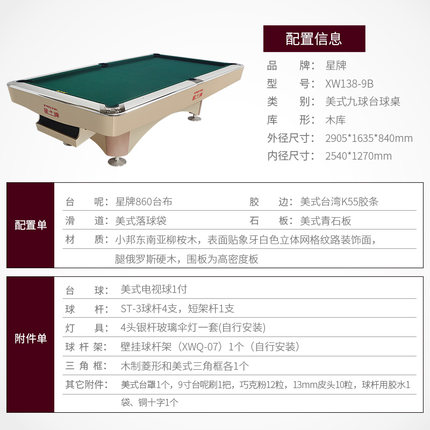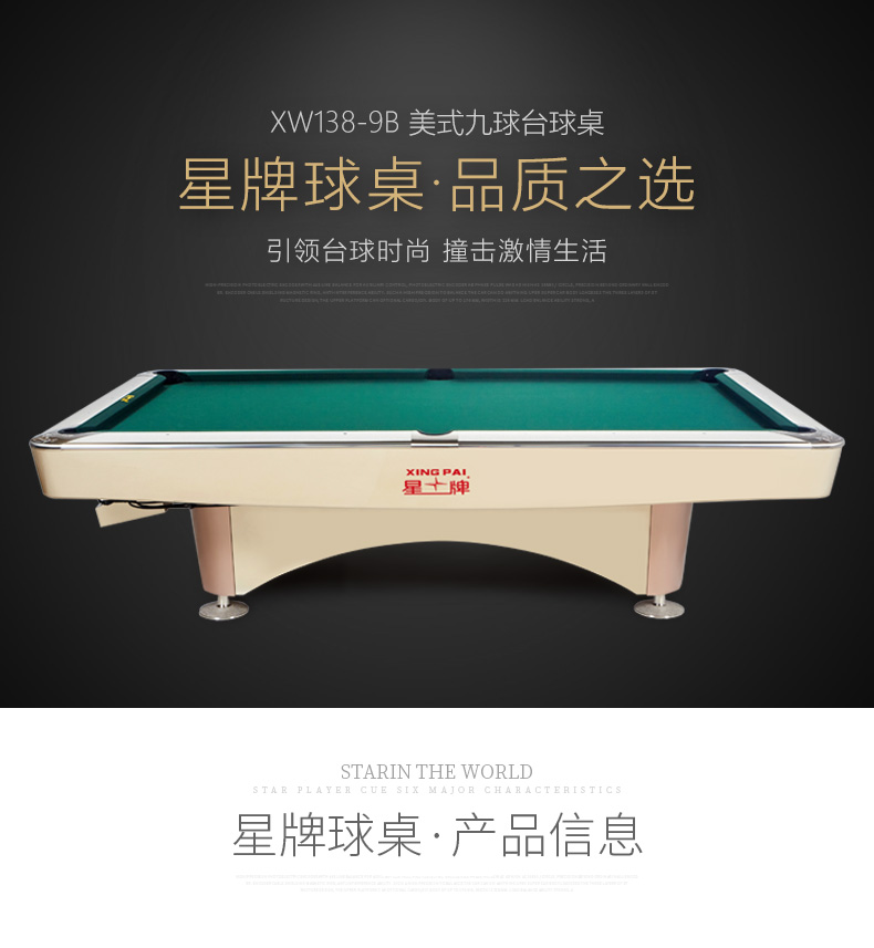 星牌 臺(tái)球桌 XW136-9B美式九球公開賽用臺(tái)